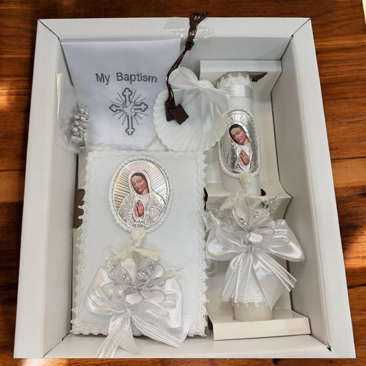 6 Piece Virgin Mary Baptism Candle Set (English)