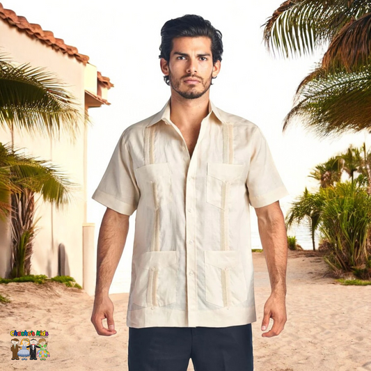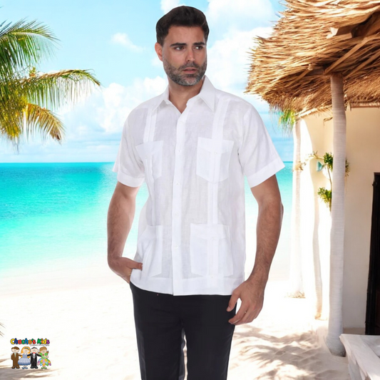 Boys Long-sleeve White Guayabera Linen (BLS304)