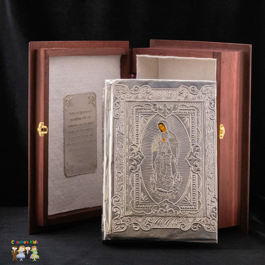 Artisanal Embossed Metal Holy Bible (Cedar Box) (Large-Silver)