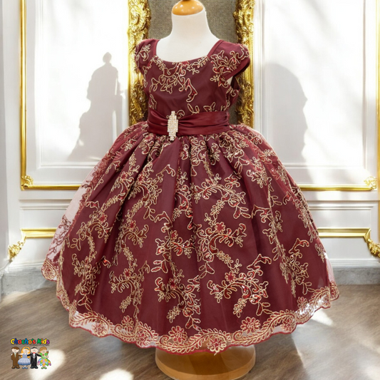 Girls Princess Puff-Sleeve Party / Flower Girl Dress (1091)