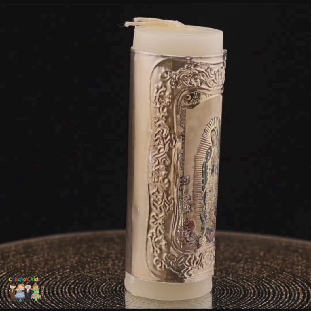 - This 12-piece candles are designed with a beautiful Metal Embossed image of the Virgin Mary on each Candle, making them the perfect addition to your baptism, christening, or other faith-filled events.