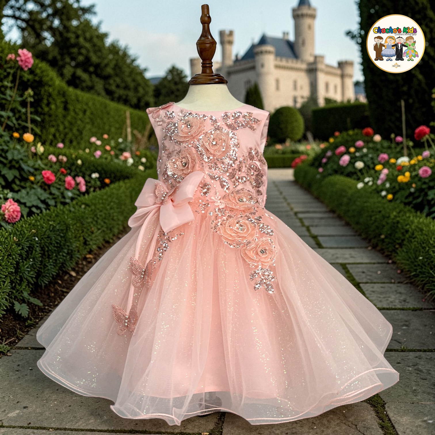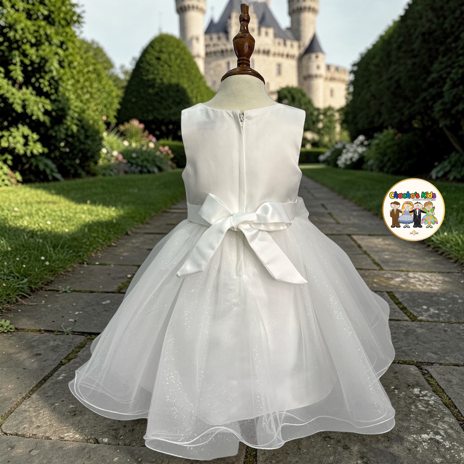 The soft tulle skirt flows effortlessly, giving a full, princess-inspired silhouette 🌸 with a subtle sparkle that glows with every step. A charming side bow adds an extra touch of sweetness and sophistication 🎀
