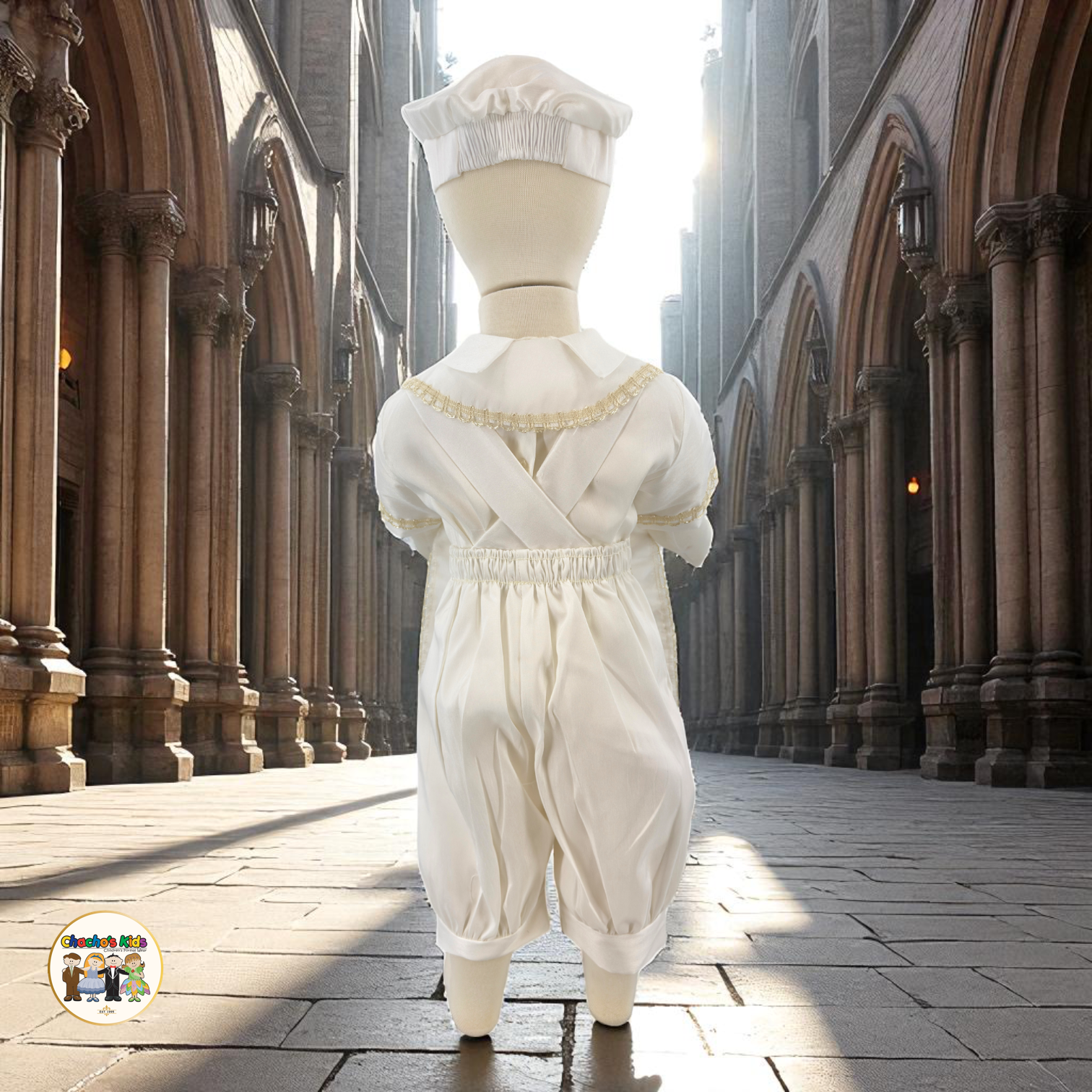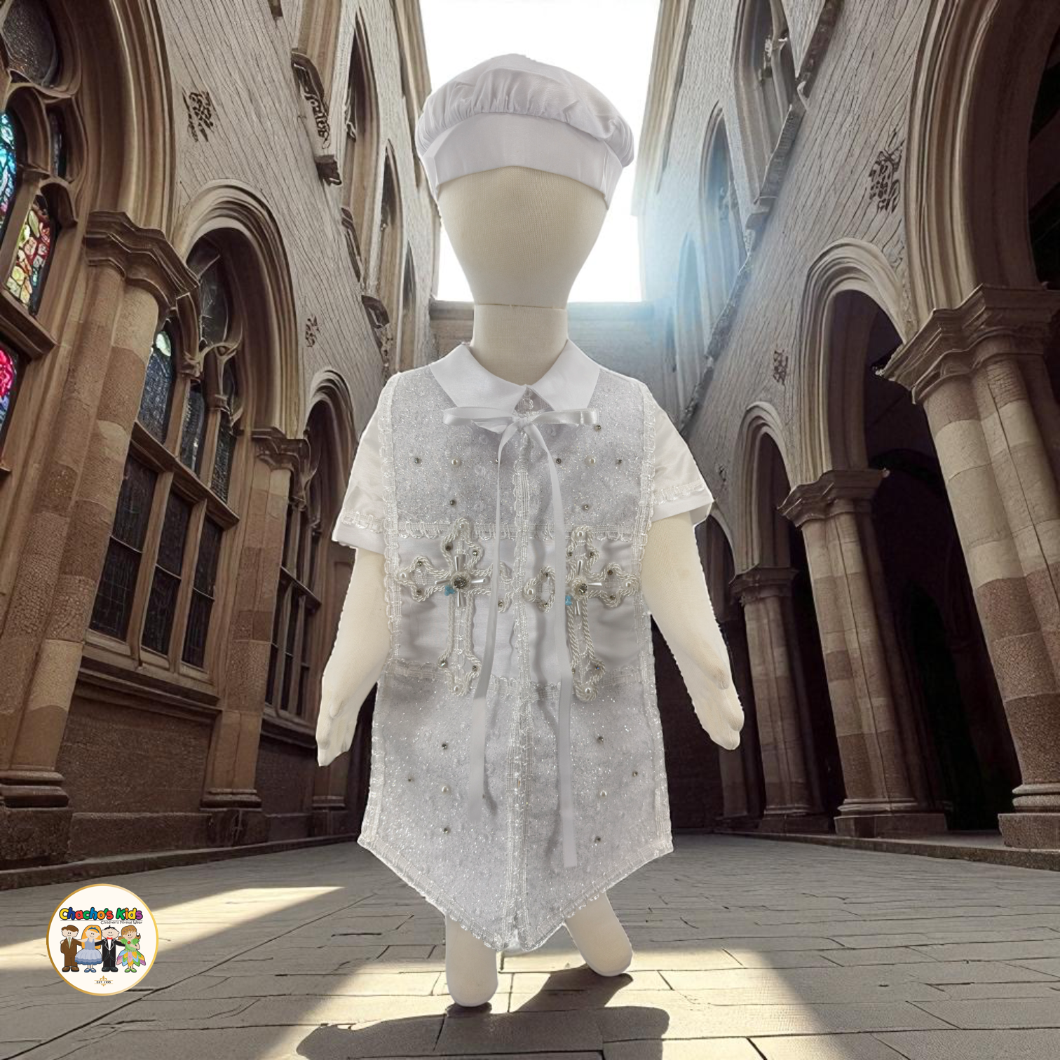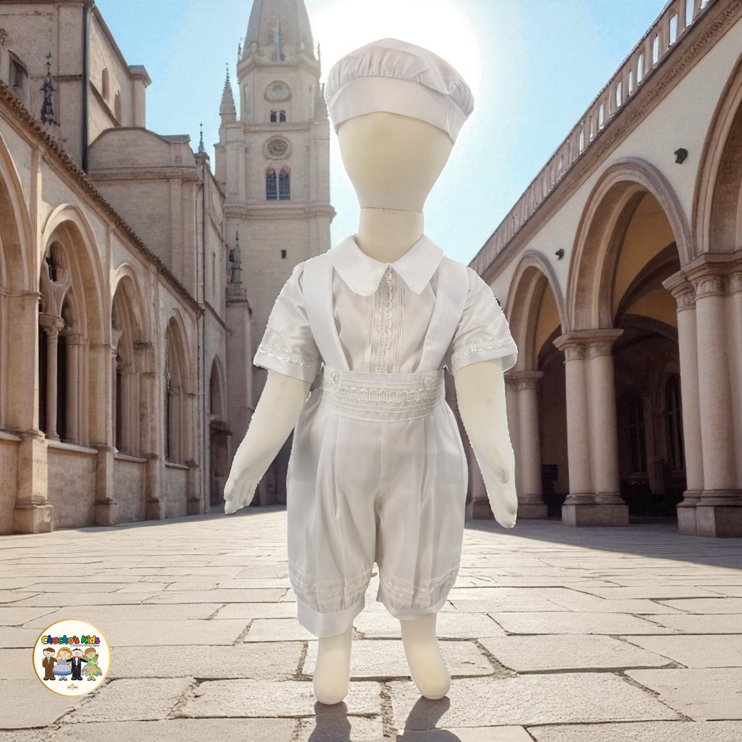 -Includes a Shirt, Romper-Style Pants, Embroider Stole , Bow Tie, and Matching Hat