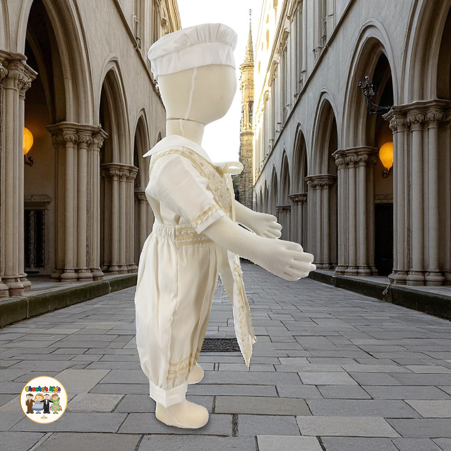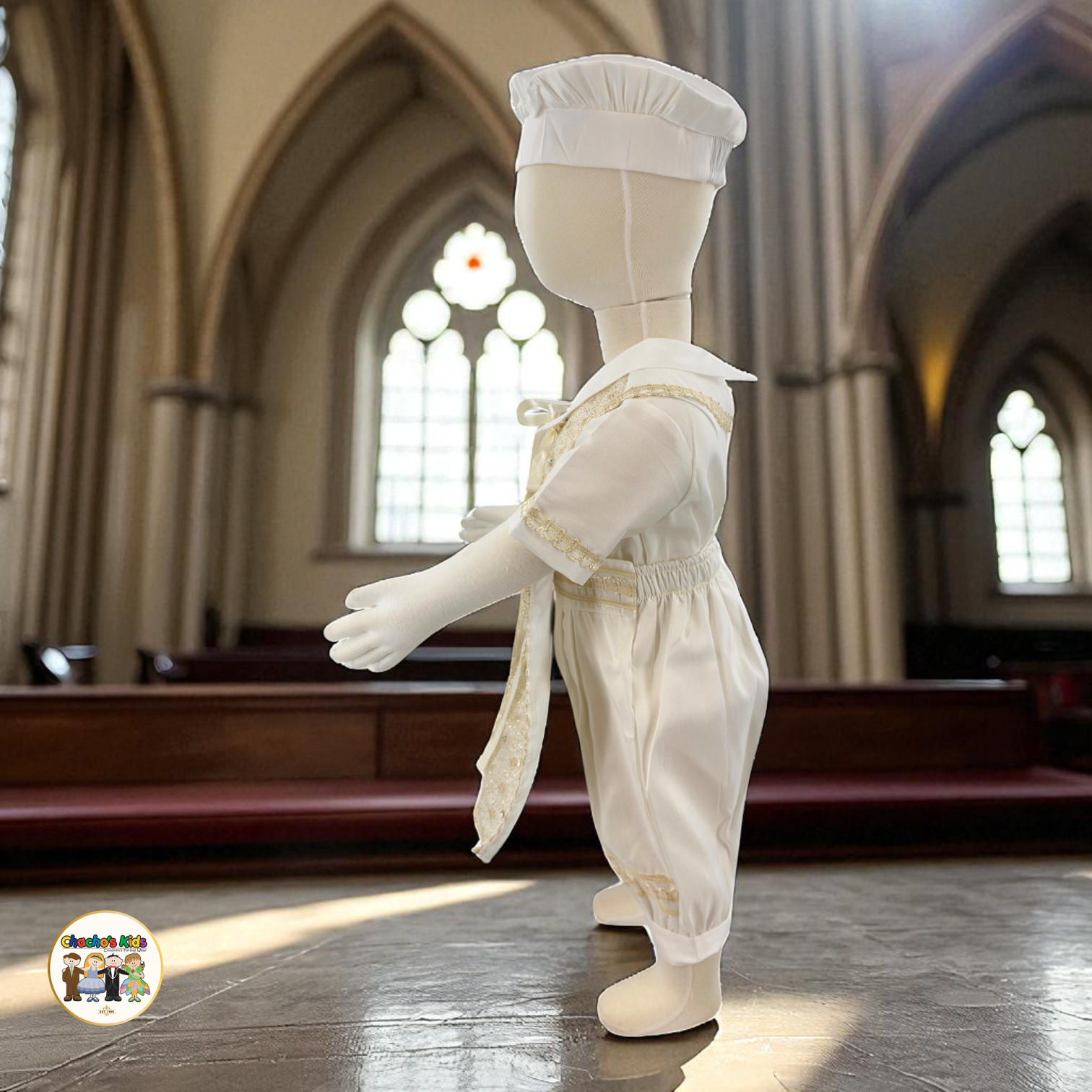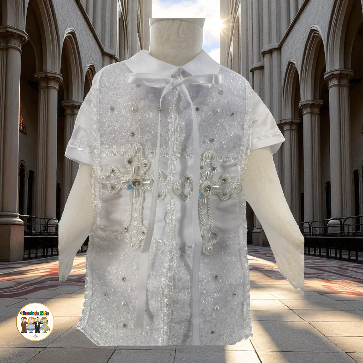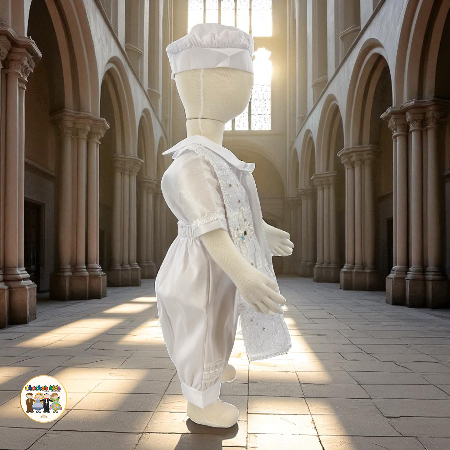 -Includes a Shirt, Romper-Style Pants, Embroider Stole , Bow Tie, and Matching Hat