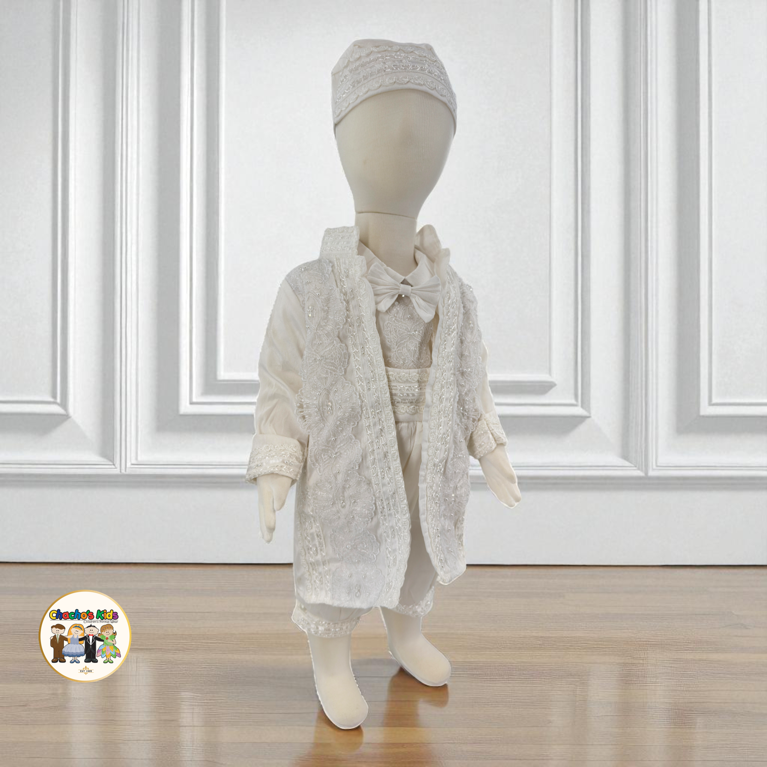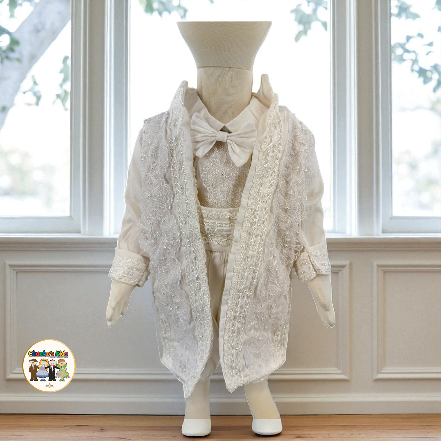 -Includes a Shirt, Romper-Style Pants, Embroider Coat, Bow Tie, and Matching Hat