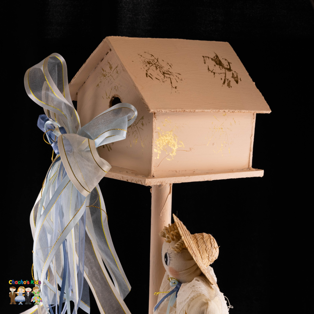 Boys Handcrafted Baptism Centerpiece (Doll Bird House)