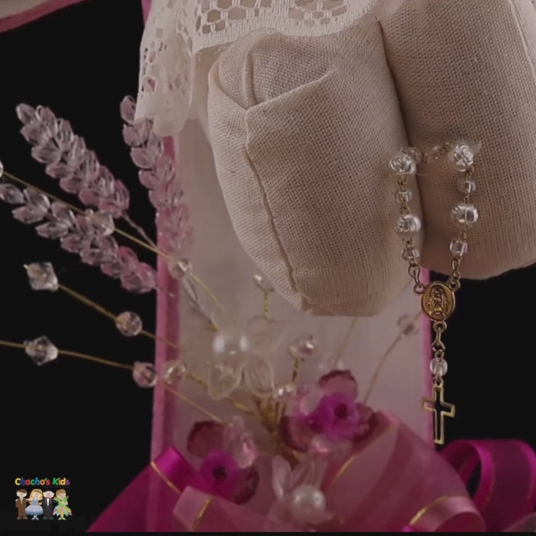 Girls Handcrafted Baptism Centerpiece (Angel Cross)-Spanish