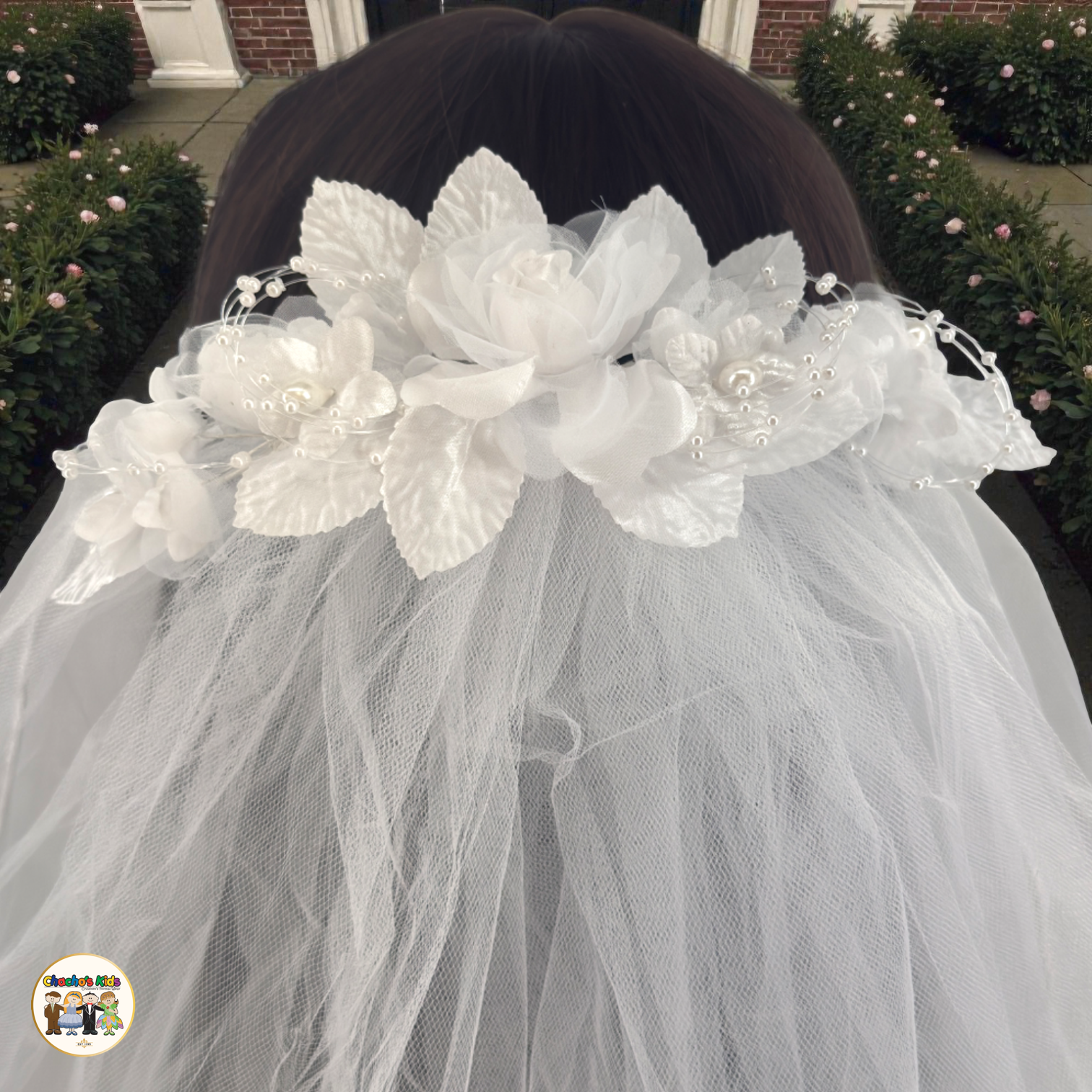 🤍 Girls First Communion Pearl Bloom Veil ✨🌸