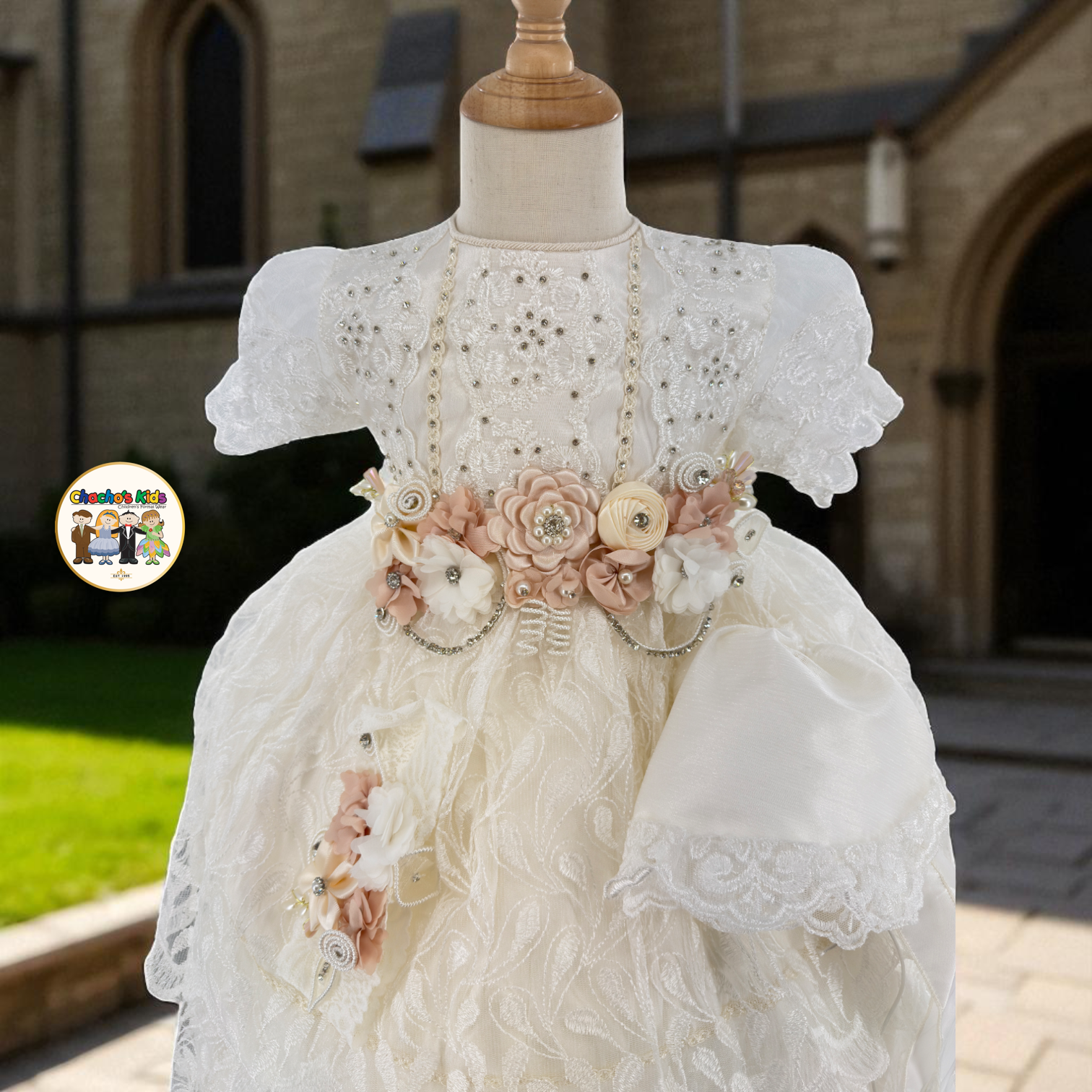 • A Stunning and Elegant Girls’ Baptism Dress with a Unique Detachable Ropón Design