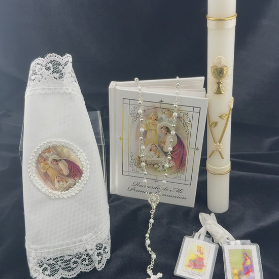 • Gift Set Includes: Prayer Book, Candle, Handkerchief, Rosary & Scapulary