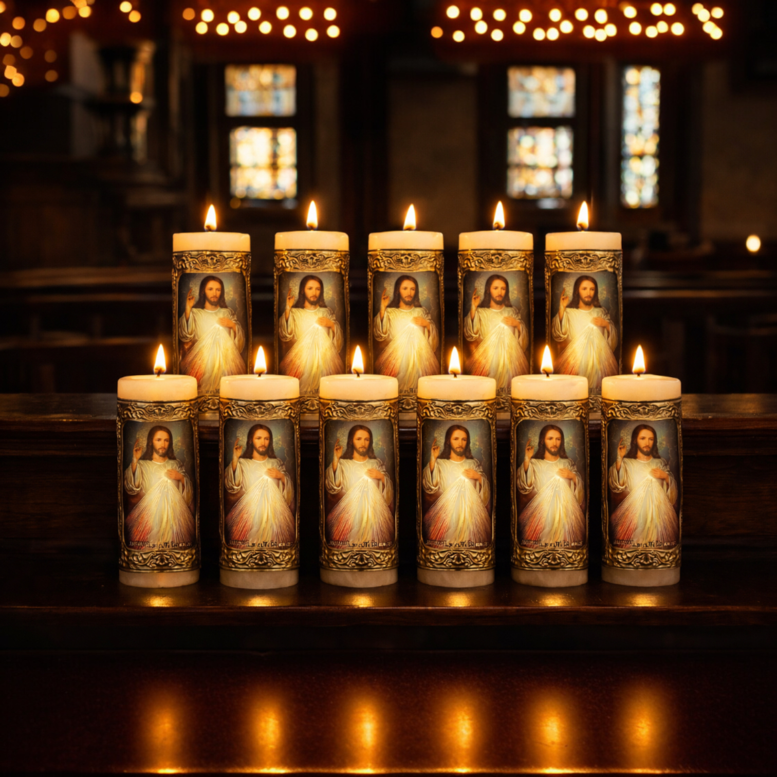 Style: One Dozen- Artisanal Metal Embossed Jesus Christ Candles