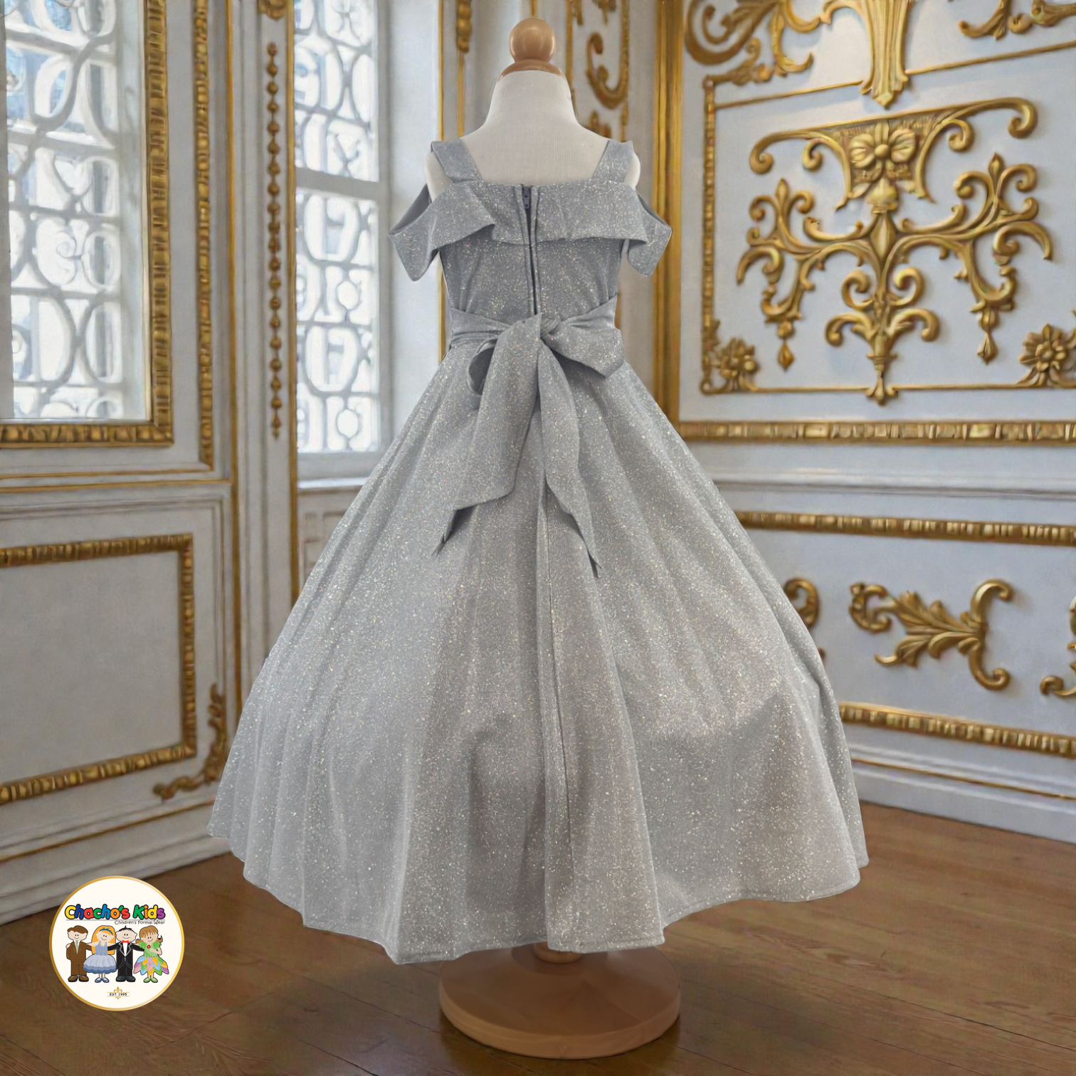 This stunning glitter-finish dress is designed to make your little girl shine with elegance and confidence at every special occasion. The bodice features a refined off-the-shoulder neckline with soft folded sleeves that add a graceful, modern touch while keeping the look timeless and sophisticated. π«